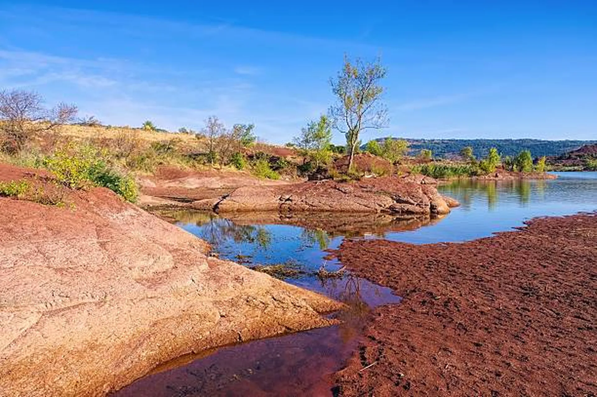 Le Lac du Salagou et ses couleurs détonantes est le cadre parfait pour une baignade ou des activités nautiques dans le périmètre du Grand Site" Salagou - Cirque de Mourèze"